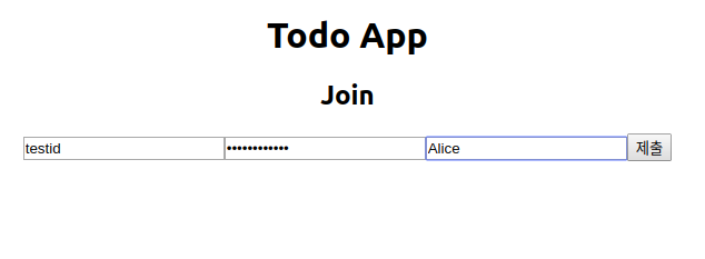 import React, { useState, useEffect } from 'react'; const Todo = ({ setHasCookie, removeCookie }) => { const [ todos, setTodos ] = useState(null); useEffect(() => { const abortController = new AbortController(); const signal = abortController.signal; const getAllTodoApi = () => { return new Promise((resolve, reject) => { fetch('/todos', { signal: signal, method: 'GET', headers: { 'Content-Type': 'application/json' } }) .then(res => resolve(res.json())) .catch(err => reject(err)); }); }; const onTodoLoad = async () => { try { const response = await getAllTodoApi(); if (response.error === 'token expired') { setHasCookie(false); } else { setTodos(response.todos); } } catch (err) { console.log(err); } }; if (!todos) { onTodoLoad(); } return () => { abortController.abort(); } }, [ todos, setHasCookie ]); return ( <div> <h2> Todo <button type="button" onClick={removeCookie} > logout </button> </h2> <ul> {todos && ( todos.map(todo => ( <li key={todo._id}> <span>{todo.content}</span> <span>{todo.created_at}</span> <input type="checkbox" value={todo.complete} /> </li> )) )} </ul> </div> ); }; export default Todo;회원가입과 로그인이 모두 성공하면 todo 페이지로 이동한다.