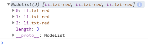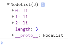 또한 querySelectorAll()을 이용하여 가져 온 li 요소들은 NodeList라는 이름의 객체로 반환된다.