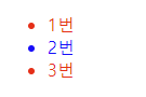 <ul class="list"> <li class="txt-blue">1번</li> <li class="txt-blue">2번</li> <li class="txt-blue">3번</li> </ul>.txt-blue { color: blue; } .txt-red { color: red; }