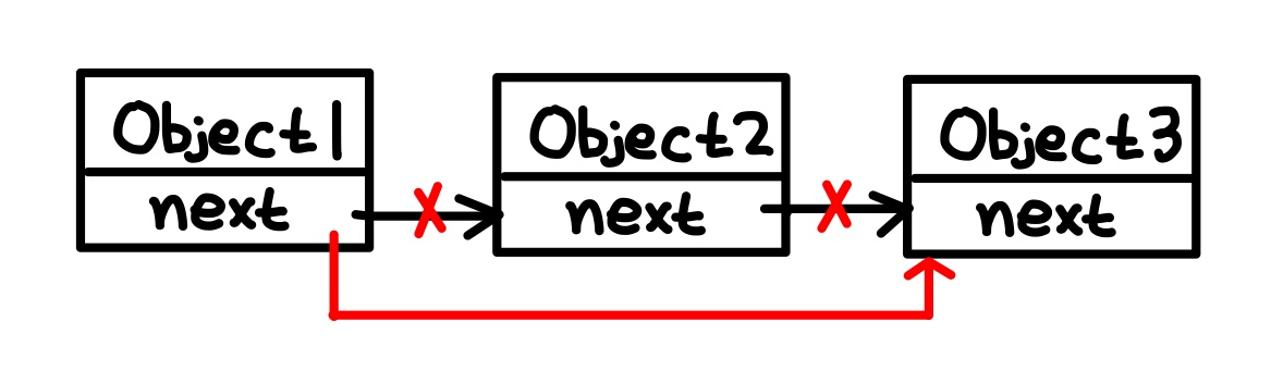 삭제하고자 하는 요소의 이 전 요소의 꼬리를 다음 요소와 연결시켜주면 된다.
