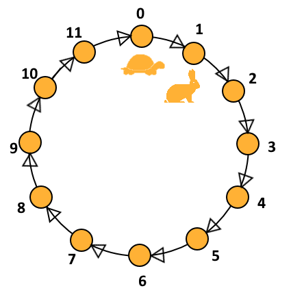 이것을 반복하여 이동하다보면 만약 이 리스트가 순환하고 있다면 언젠가 토끼와 거북이는 반드시 만난다.