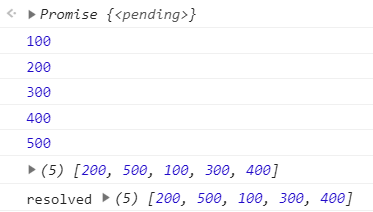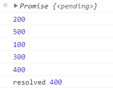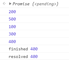 then 구문이 살행되고 콘솔 창에 'resolved' 400이 마지막으로 찍히게 된다.