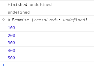 async function processPrint (numbers) { let result; for (n of numbers) { result = await printNumber(n); } console.log('finished', result); return result; } processPrint(numbers) .then((final) => console.log('resolved', final));해결책은 for문이나 for...of문을 사용하는 것이다.
