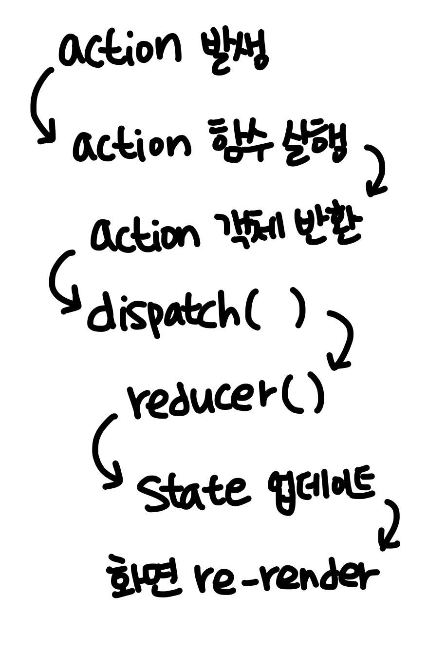 action을 발생시킨 후, 이 객체를 dispatch() 함수의 인자로 넘겨주며,