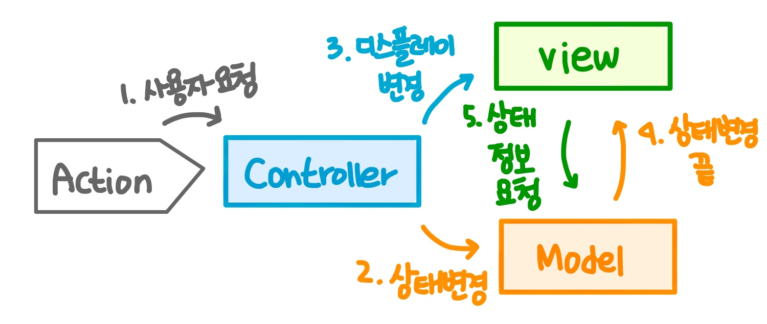 - Controller는 Model의 자료와 View의 인터렉션을 총괄하는 어플리케이션 로직을 관리한다.