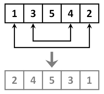 배열의 맨 왼쪽 인덱스와 맨 오른쪽 인덱스를 잡아서 값을 교환하고