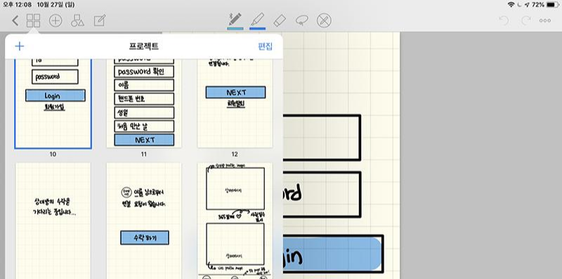 아이패드 노트앱으로 필요한 페이지들의 간단한 목업도 만들었다.