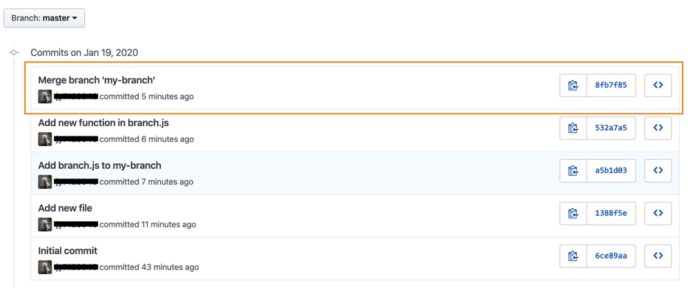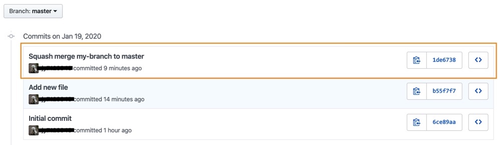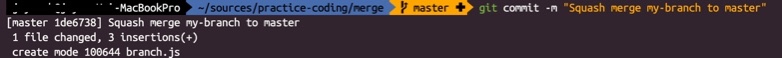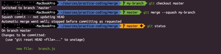 my-branch의 여러 개의 history가 하나로 합쳐져서 새로운 commit을 생성한다.