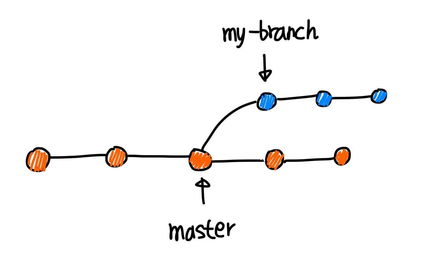 여러 명이 공동으로 작업하는 repository를 clone 받아 작업을 한다고 생각해보자. master라는 공동의 브랜치가 존재하고 나는 my-branch라는 이름의 브랜치를 만들어서 코드 작업을 한다.