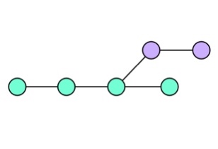 $ git branch my-branch $ git checkout my-branch작업을 다 끝내고 master 브랜치에 merge를 하려고 했는데, 내가 merge하기 전에 누군가가 master 브랜치에 다른 작업을 한 후 commit하고 push했다. 그렇다면 이런 모양이 될 것이다.