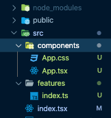 컴포넌트들이 담길 components 폴더와 actions와 reducers 함수들이 담길 features 폴더.