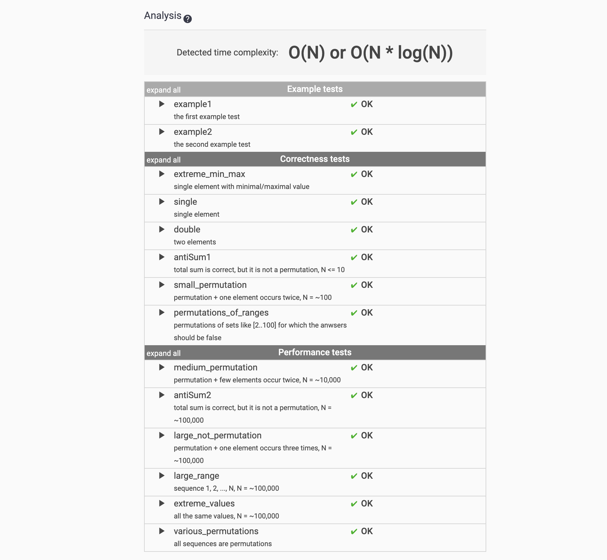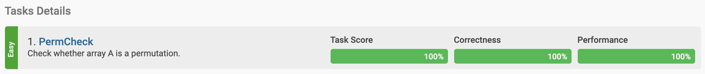 문제는 주어진 배열이 Permutation(순열)인지 체크하는 문제인데, 아주 간단하다.