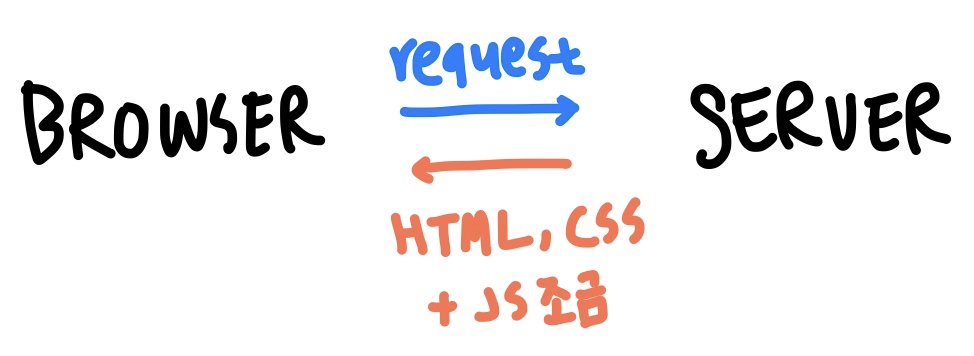 초창기에는 모든 웹 페이지가 정적인 페이지였다. 대부분의 로직은 서버에서 수행되었고, 브라우저는 서버로부터 전달받은 정적인 HTML과 CSS를 단순히 렌더링하는 방식으로 동작했다. 즉, 우리가 웹 사이트에 접속하면 브라우저는 서버에 간단한 HTTP 요청을 전송하고, 서버로부터 전달 받은 HTML을 렌더링하는 방식인 것이다. 화면에 어떠한 변화를 주려고 화면을 전환하면 그 때마다 서버로부터 새로운 HTML을 전송 받아서 다시 렌더링해야 했다. 당연히 매 번 처음부터 새로 렌더링하기 때문에 성능적인 문제도 많았고 화면이 전환될 때마다 화면이 깜박이는 등의 문제가 있었다.
