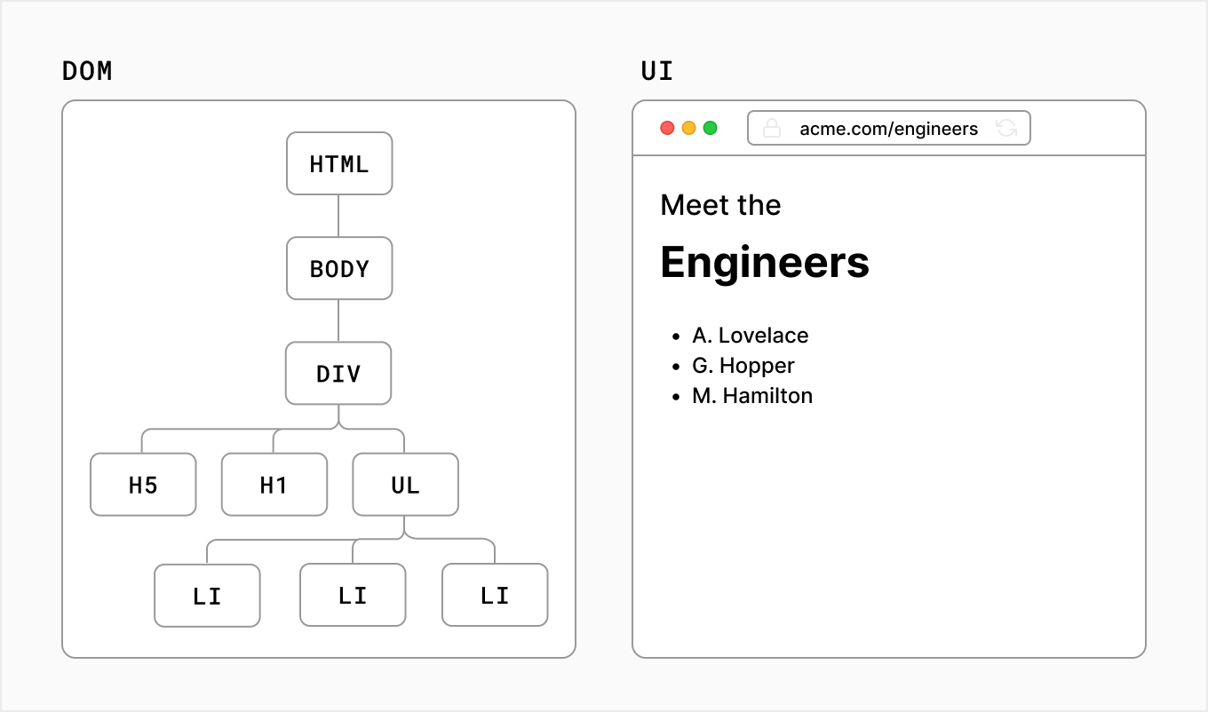 리액트가 어떻게 동작하는지 이해하려면, 우리는 interactive한 유저 인터페이스(UI)를 만들기 위해 먼저 브라우저가 여러분의 코드를 어떻게 해석하는지 기본적으로 이해해야 한다.