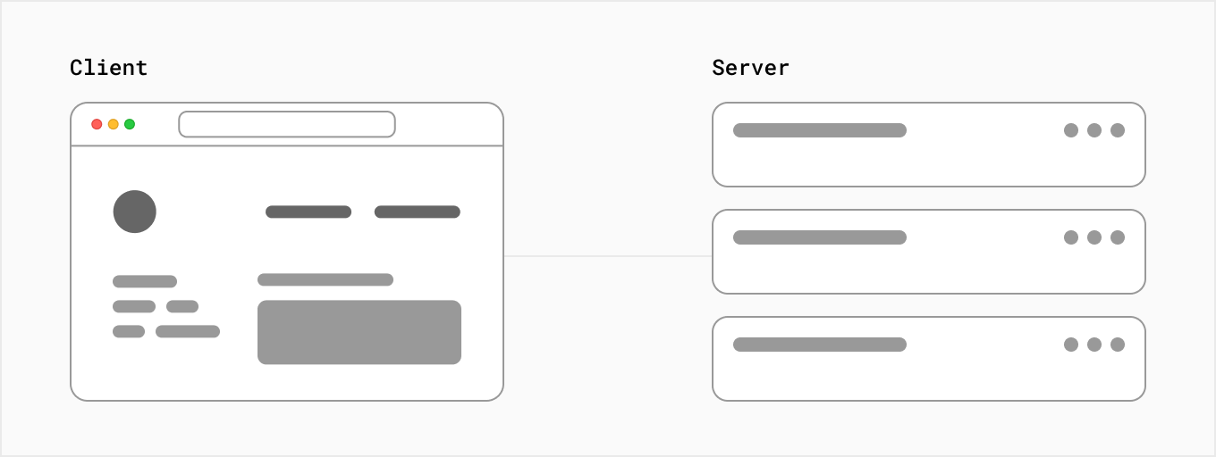 웹 어플리케이션 맥락에서 client는 어플리케이션 코드를 위해 서버에 요청을 보내는 유저 디바이스의 브라우저를 지칭한다. 요청을 보내고 나면 서버로부터 받은 응답을 유저가 상호작용할 수 있는 인터페이스로 전환한다.