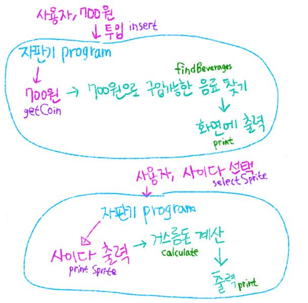 그럼 이 자판기 프로그램을 객체지향 방식으로 짜면 어떤 모습일까?