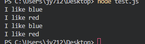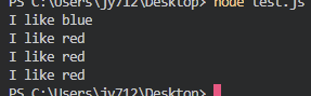 실행하면 콘솔창에 I like blue가 뜰 것이고 1초 후, I like blue가 또 뜰 것이다.