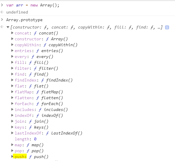 바로 arr의 상위 프로토타입인 Array.prototype이 push 메소드를 가지고 있기 때문이다.