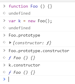 Foo.prototype.constructor와 k.constructor가 동일한 값을 가져오는 것을 확인할 수 있다.