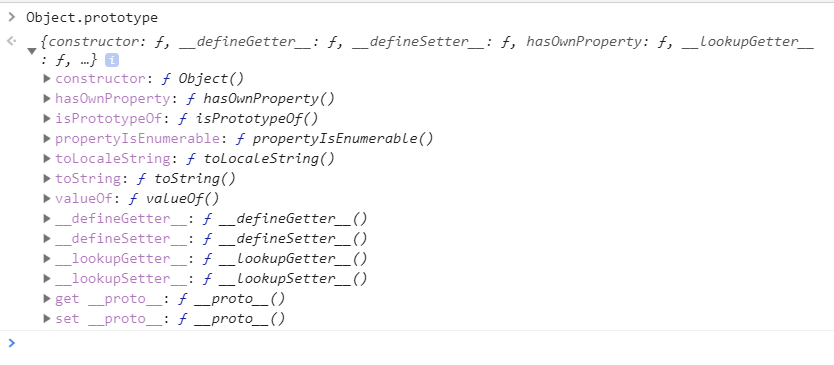 우리가 콘솔창에 Object.prototype이라고 타이핑하면 아래와 같이 확인 할 수 있다.